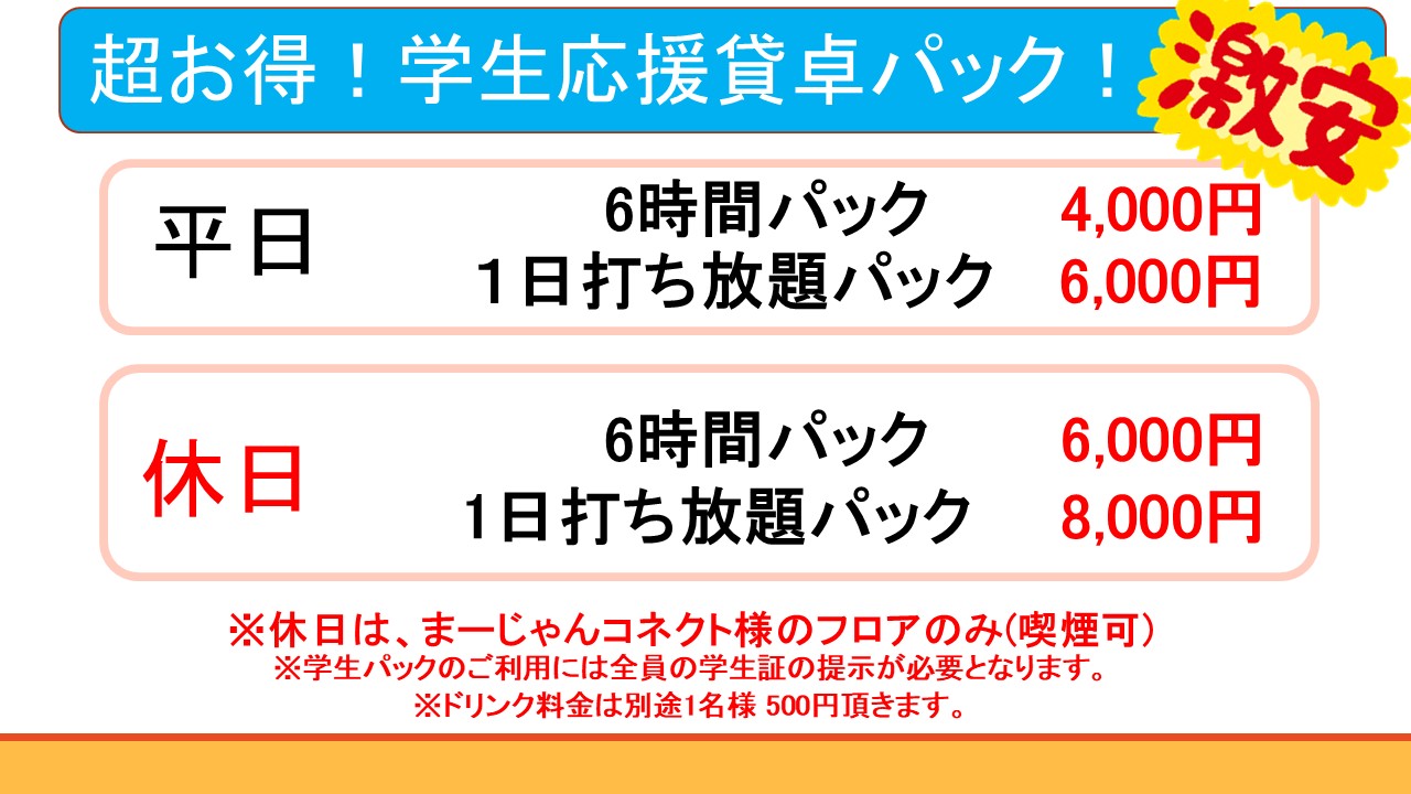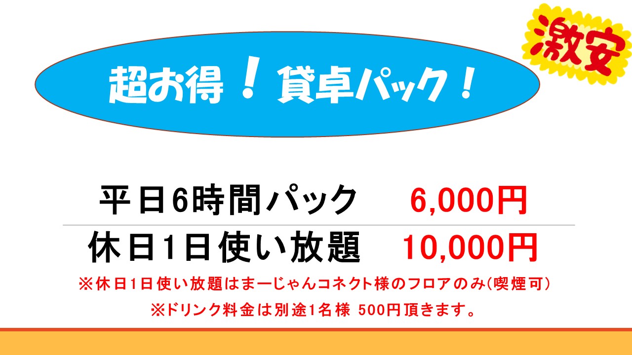 ※貸卓様はタバコ喫煙可能エリアご案内可能となりました。